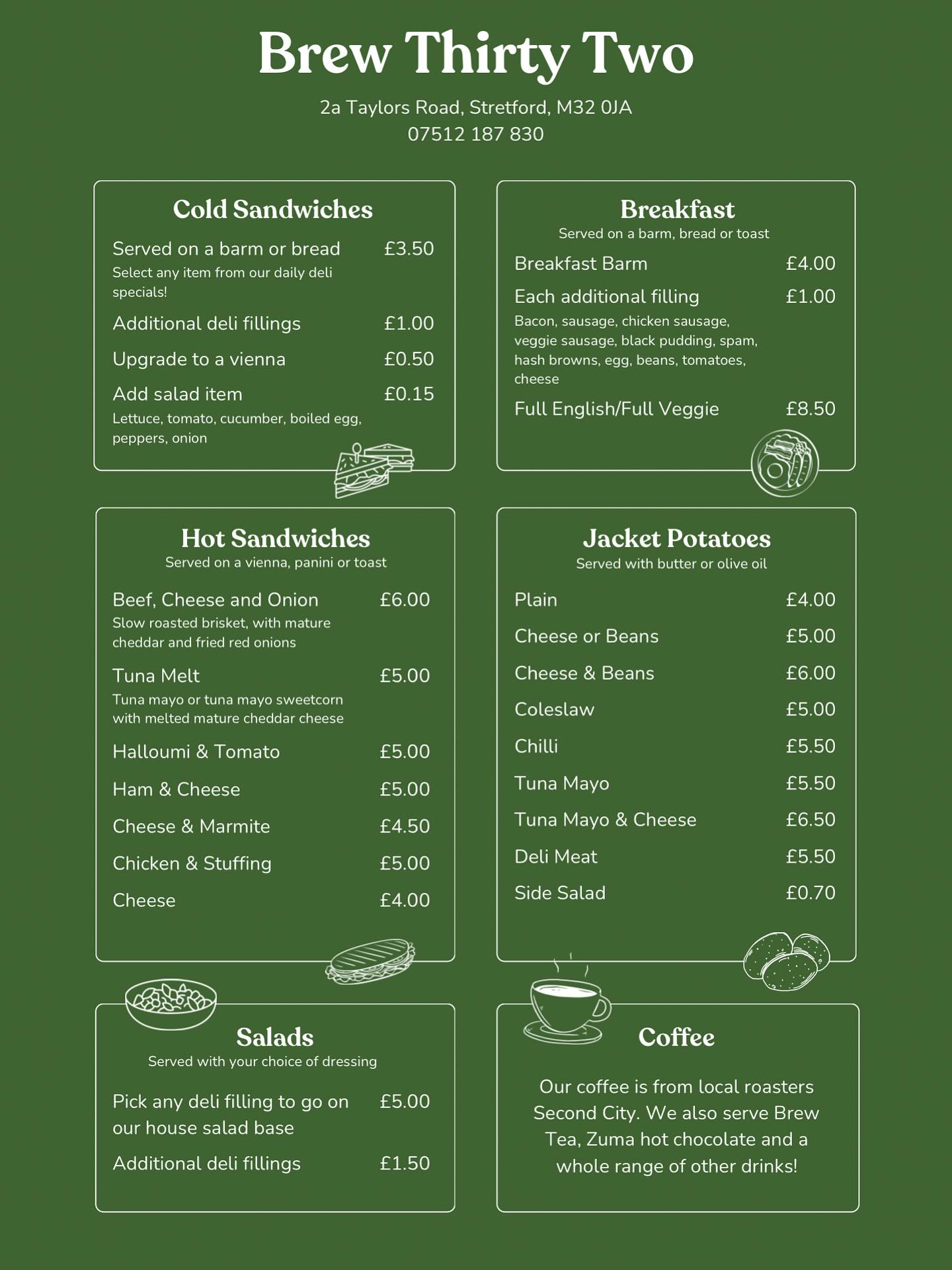 Here is our latest menu with everything we offer, made fresh for you in the shop.